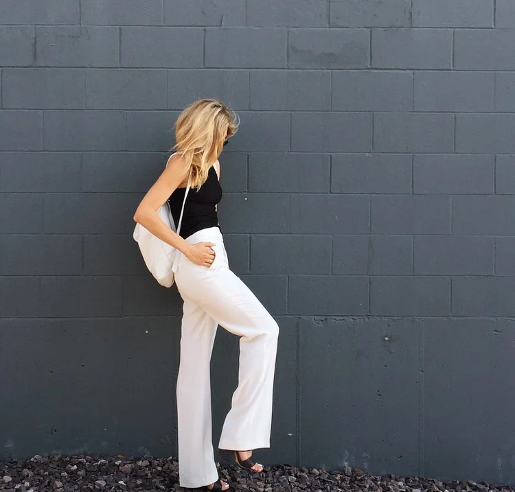 I laid eyes on this backpack last summer at Assembly in New York and it's been on my mind ever since. I'm typically so drawn to black accessories that it was a huge leap of faith to purchase the white version (fashion decisions can be some of life's hardest choices... as silly as that sounds). I couldn't be happier with my choice and already wear it nonstop. It's easy, chic and yes... The white leather cleans up nicely at the end of the day with a toddler and the rest of life's little messes. Now I sound like a Bounty commercial. But alas, I'm drawn to white just as much as black and every other non-color of the rainbow. I will definitely be wearing this staple piece with everything from workout gear to my favorite high waisted white pants. I'm also obsessed with ribbed and high neck anything at the moment and this tank fit the bill. Had to have it in white and black (what a surprise I know).